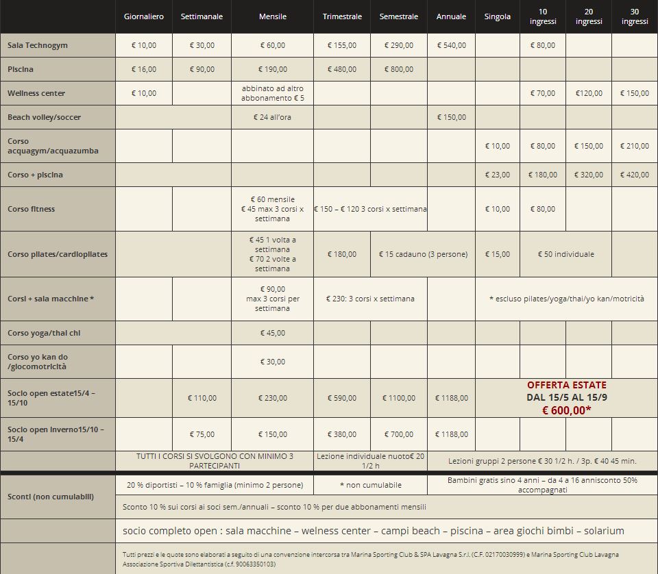 Sconto del 20/25% sul tariffario, al raggiungimento di almeno 15 presenze